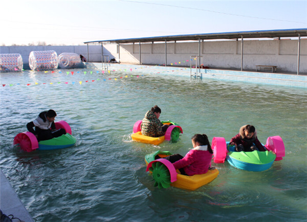 手搖船若干,步行球若干,水上漂浮36件??傢椖客顿Y 18萬左右。日進客人次 400人左右,日收入 4000元以上。