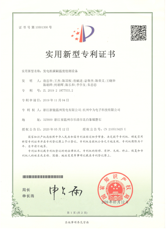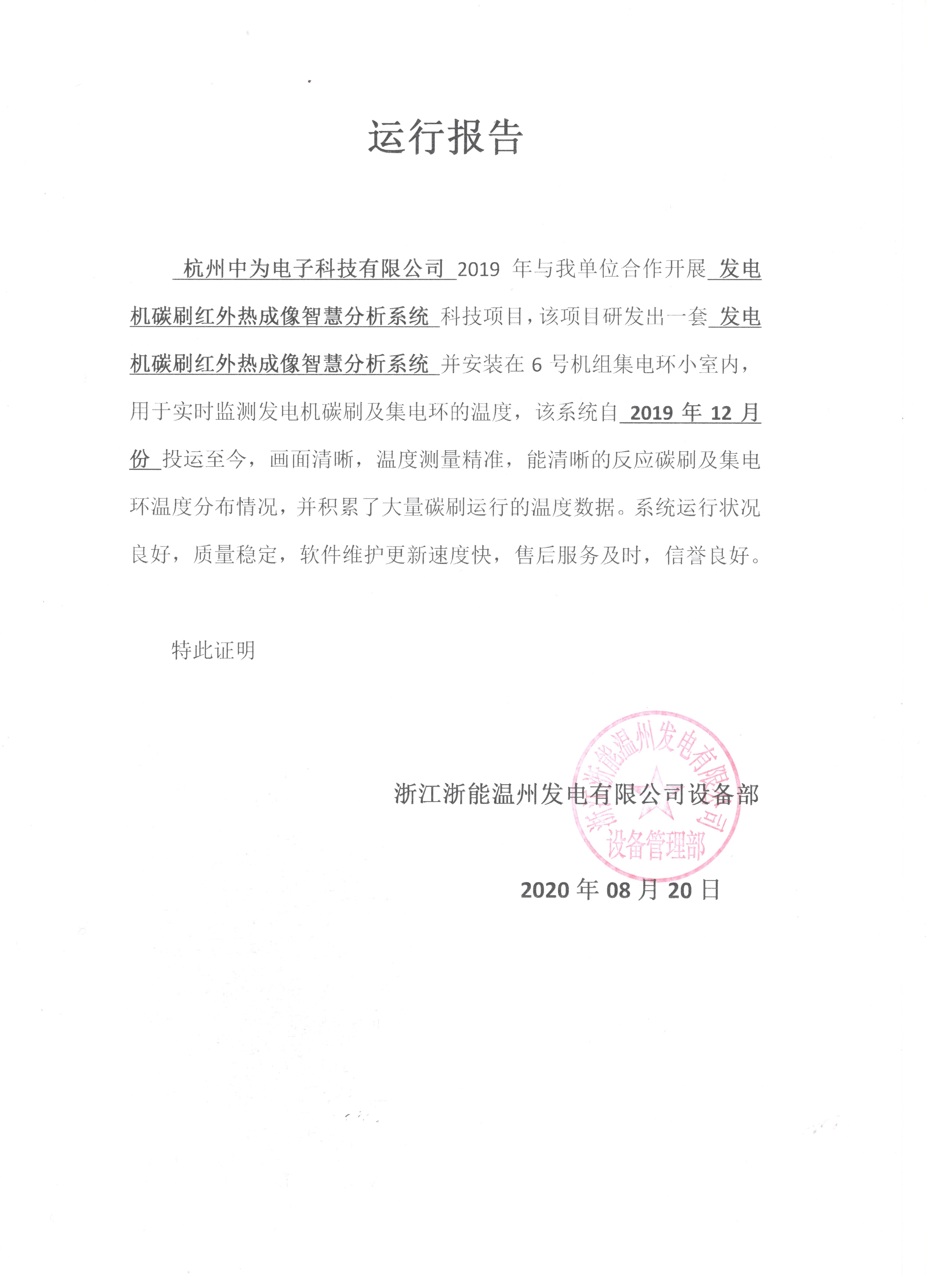 發(fā)電機碳刷在線監(jiān)測系統(tǒng)研發(fā)項目2019年1月份由我公司與浙江浙能溫州發(fā)電有限公司聯(lián)合開展科技項目立項申請,并由浙能集團公司審批通過。項目在2019年9月份正式啟動研發(fā),10月底完成硬件部分的研發(fā)有生產(chǎn),并于11月12日在溫州電廠6號機組集電環(huán)小室內(nèi)完成安裝。11月底軟件部分的也基本完成,12月5日完成軟硬件的對接工作,12月13日由溫州電廠內(nèi)部組織項目驗收。2020年1月9日在溫州召開了專家驗收會議,參加會議的技術(shù)專家有陳彪(浙江浙能技術(shù)研究院,高級工程師)、彭福仁(浙江溫州特魯萊發(fā)電有限責(zé)任公司,高級工程師)、楊幫敏(浙江浙能樂清發(fā)電有限責(zé)任公司,高級工程師)、李時欣(浙江浙能紹興濱海熱電有限公司,注冊消防工程師)、瞿瀟(浙江浙能長興發(fā)電有限公司,高級工程師)。