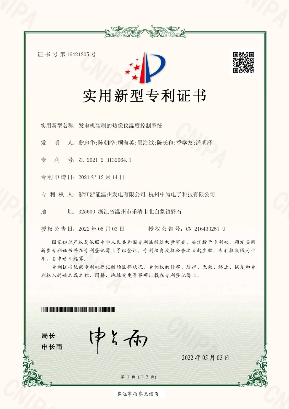 本項目已申請2項實用新型專利,并發(fā)表一篇論文;一項專利名稱為“發(fā)電機碳刷溫度檢測設(shè)備”,申請?zhí)枮镃N201921877533.2 ;一項專利名稱為“發(fā)電機碳刷紅外熱像儀”,申請?zhí)枮镃N201921877571.8;論文名稱為“集電環(huán)-碳刷紅外熱成像在線監(jiān)測系統(tǒng)”,電力系統(tǒng)裝備。