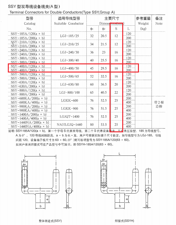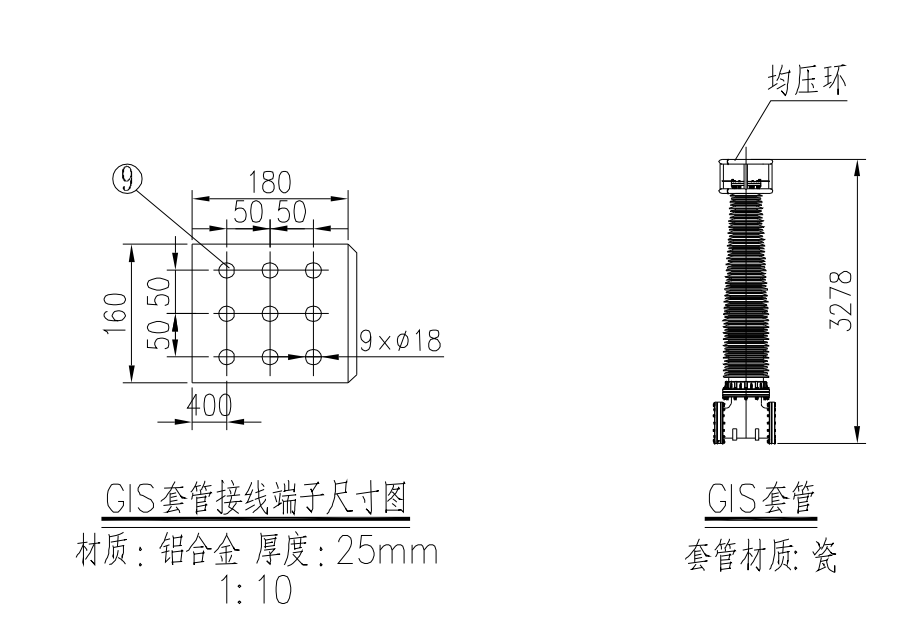 以下圖為例,施工現(xiàn)場進(jìn)行GIS套管一次設(shè)備連線安裝,套管接線板厚度δ=25mm,設(shè)計(jì)采用的金具型號(hào)為SSY-400A/200(180*160)。根據(jù)設(shè)計(jì)圖紙上廠家提資一次接線板厚度(圖二)和金具手冊上金具接線板厚度(圖三),核算GIS套管連線端子所需熱鍍鋅螺栓總長度。