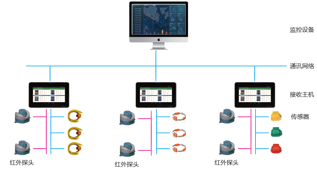 無線溫度監(jiān)測系統(tǒng)具有極高的可靠性和安全性,可直接安裝到每臺高壓開關、母線接頭、戶外刀閘、變壓器等容易產生高溫的電氣接點處。系統(tǒng)配備標準通訊接口,可聯網運行。通過上位機軟件,可記錄高壓設備實時運行溫度的數據。為高壓設備的維修提供歷史數據,實現了高壓設備熱故障預知維護。