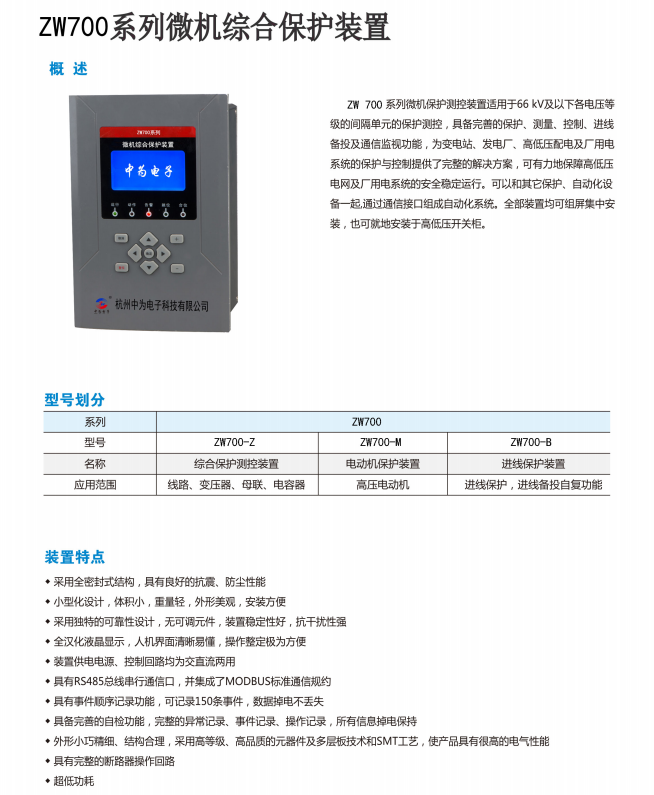ZW700系列微機綜合保護裝置