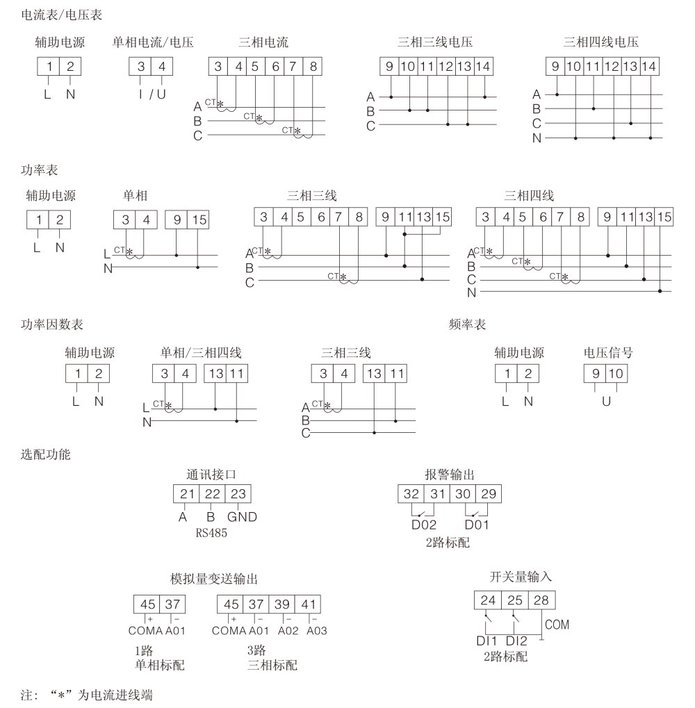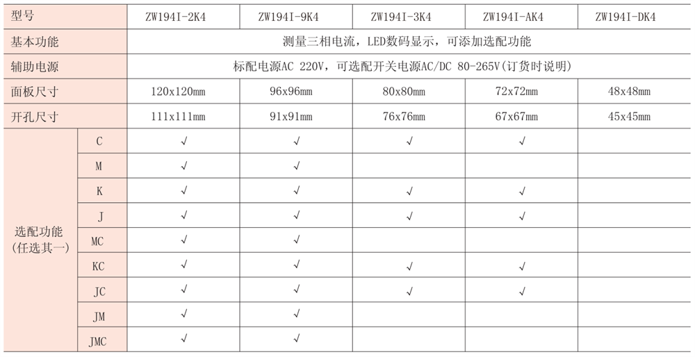 RS485通訊,“MC”代表同時(shí)帶“M”模擬量輸出和“C”RS485通訊,“KC”“JC”“JM”“JMC”同理 。