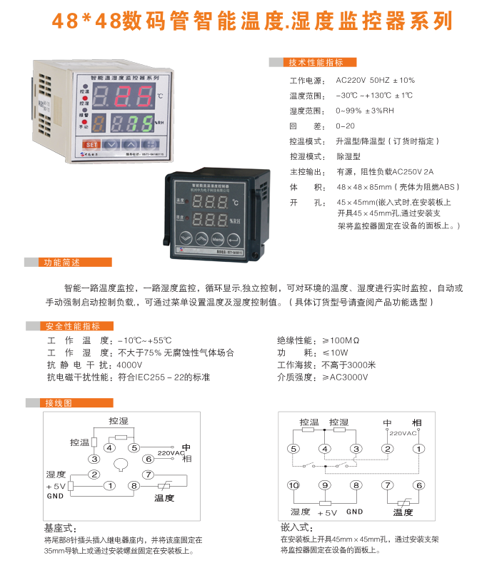 4.除凝露型:當測量濕度值大于88%RH時,啟動除凝露負載,當測量濕度小